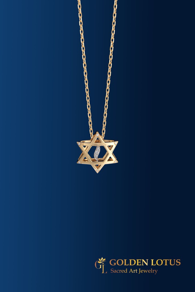 Acest uluitor pandantiv din aur alb și galben este o adevărată capodoperă ce întrupează misiunea noastră, a GOLDEN LOTUS Sacred Art Jewelry: unificarea splendorii, frumuseții, nobleței, bogăției, încântării cu spiritualitatea autentică, profund transformatoare ce înnobilează omul, înfrumusețează sufletul, îmbogățește ființa și o înaltă.
