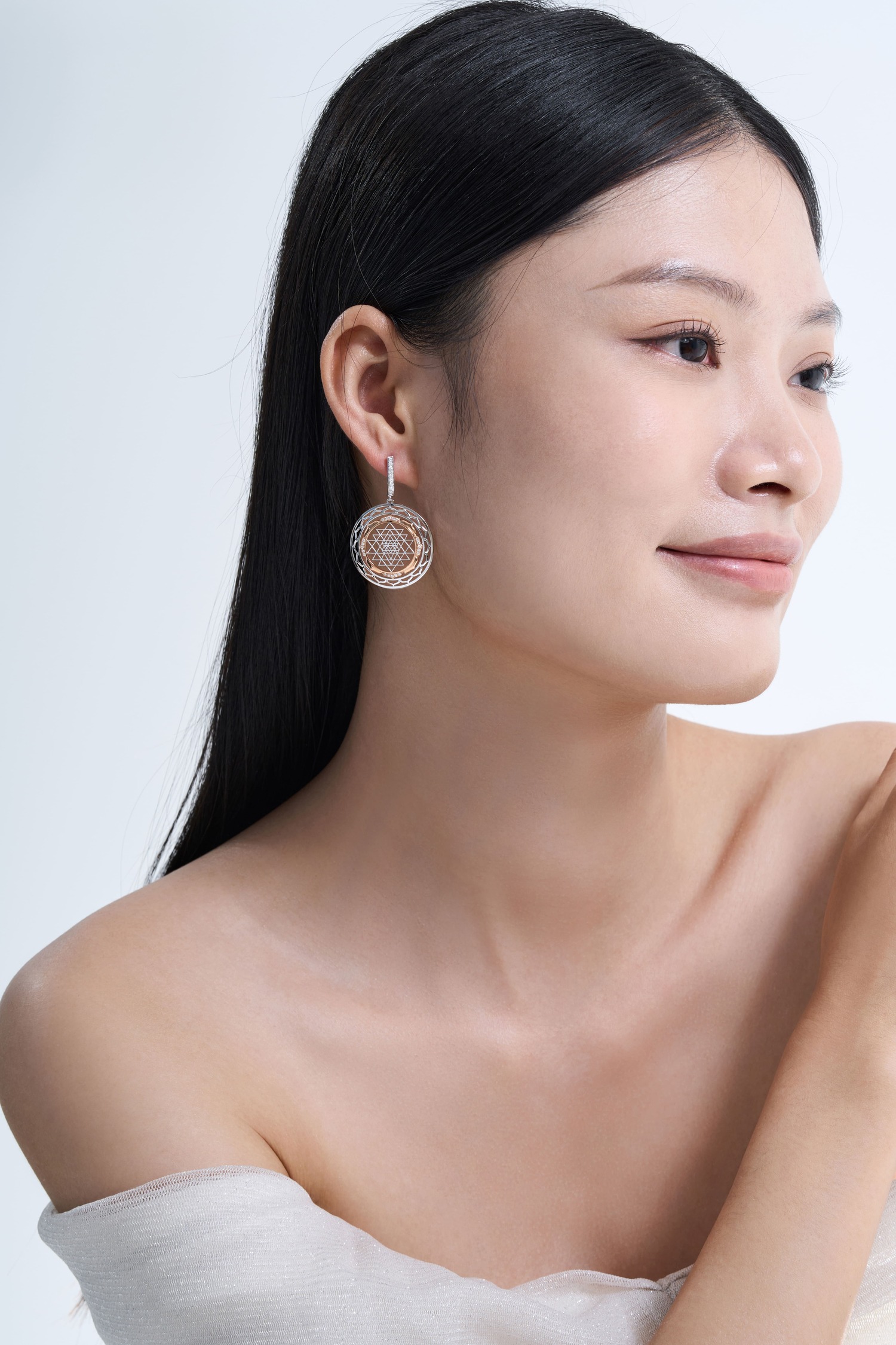 „Tara”, realizat din aur galben de 18K, reproduce forma simplificată a Yantra Tarei. Acest model exclusiv, decorat cu diamante strălucitoare, este purtător de o semnificație sacră. Un accesoriu elegant, completat de un lanț fin, această piesă formează un set armonios împreună cu cerceii Tara. Fiecare bijuterie este gravată cu simbolul Lotusului de Aur și poartă un număr de serie unic.