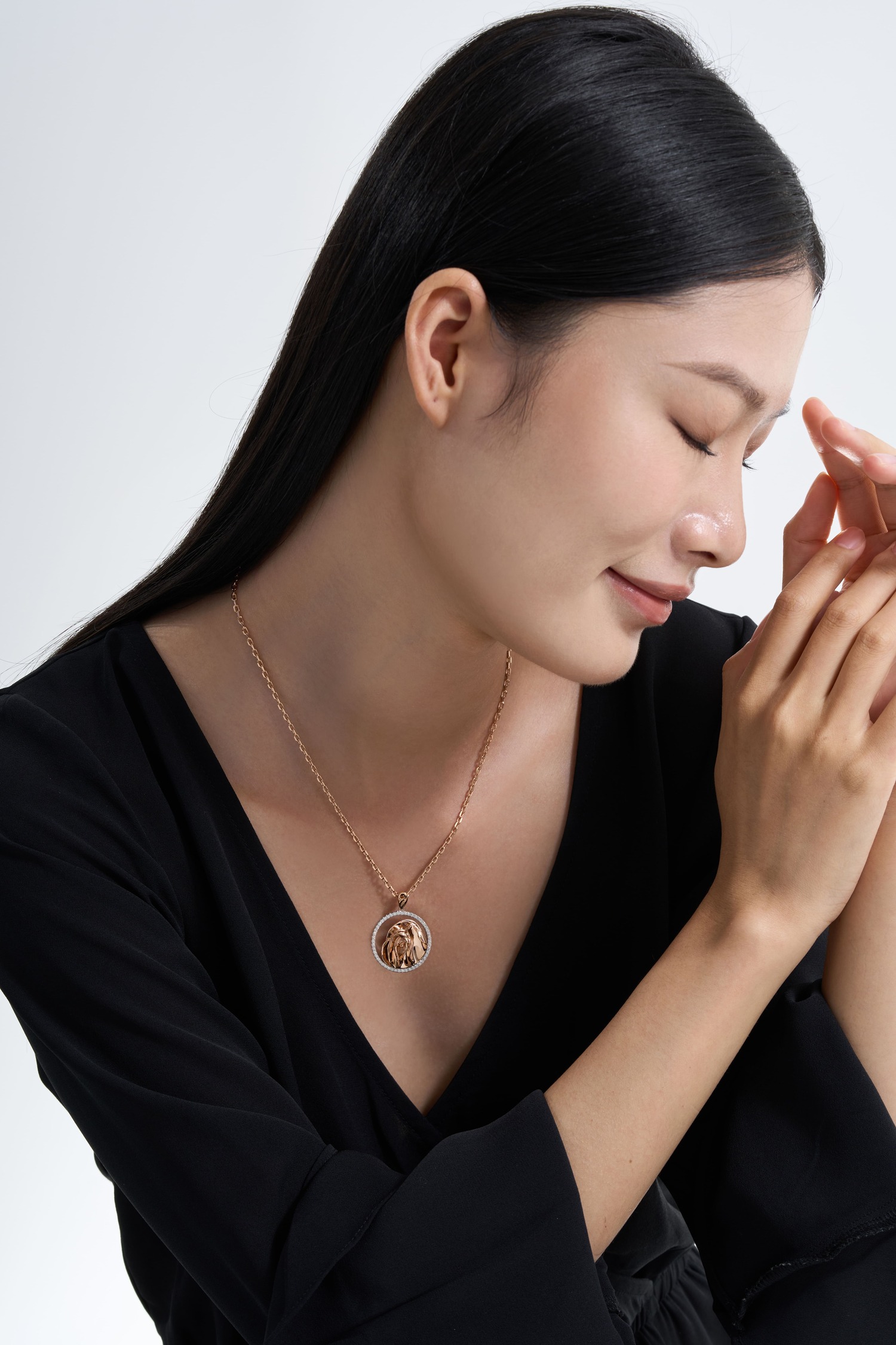 Acest pandantiv este deosebit de impactant prin simplitatea și eleganța ei aparte. Strălucitoarele diamante îi accentuază lumina, oferind o notă aparte celui sau celei care o poartă. Forma ei arhetipală creează o aură specială care ajută la conexiunea sufletească profundă cu cei din jur.